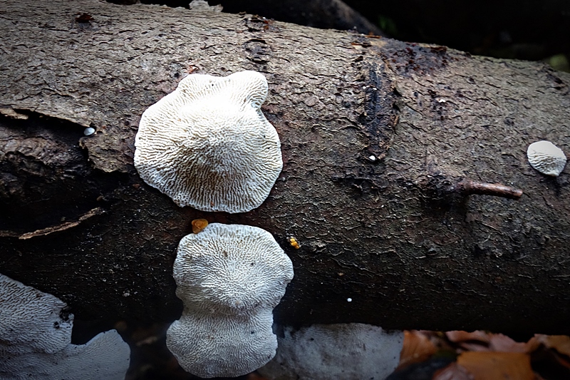 5. und daneben im gleichen Holzstapel wohl auch auf Fichte ein weißer Porling