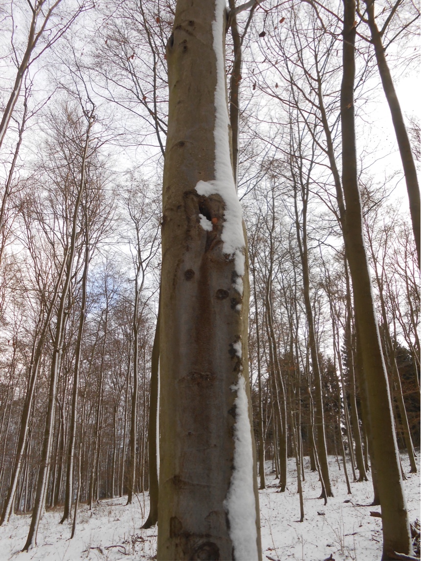 Von mir kommt jetzt noch ein bißchen Begleitwerk und Tralala zu dem kleinen Ausflug in den schneebedeckten mittelhessischen Wald, der dort hauptsächlich aus Eichen und Buchen besteht.