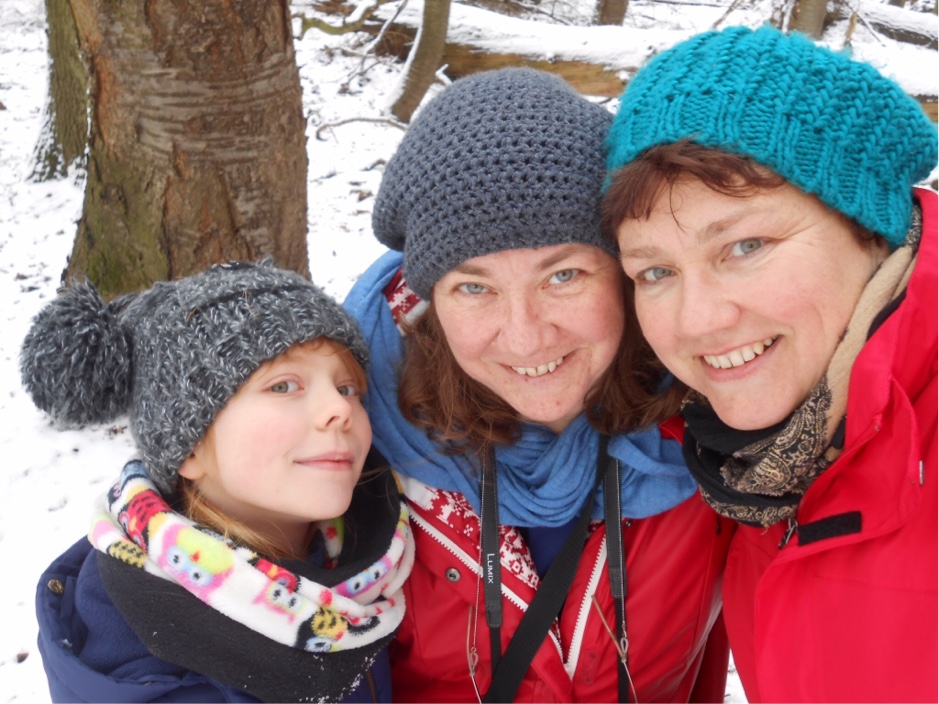 nun hab ich das Versäumte nachgeholt, klasse Winterlandschafts- und Waldmalereien in Wort und Bild, danke! Wie erfrischend auch das Foto von euch dreien, Tuppie, Lilipilz und dir. <3 Dass ihr die gleichen Wurzeln habt, sieht man auf den ersten Blick. :)