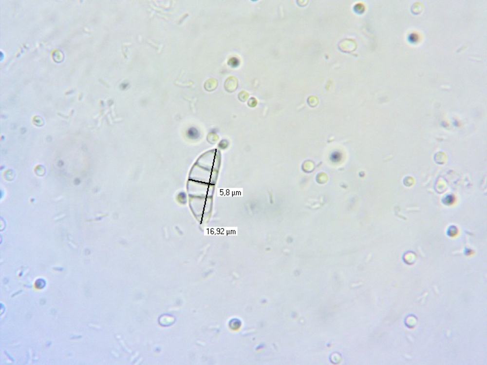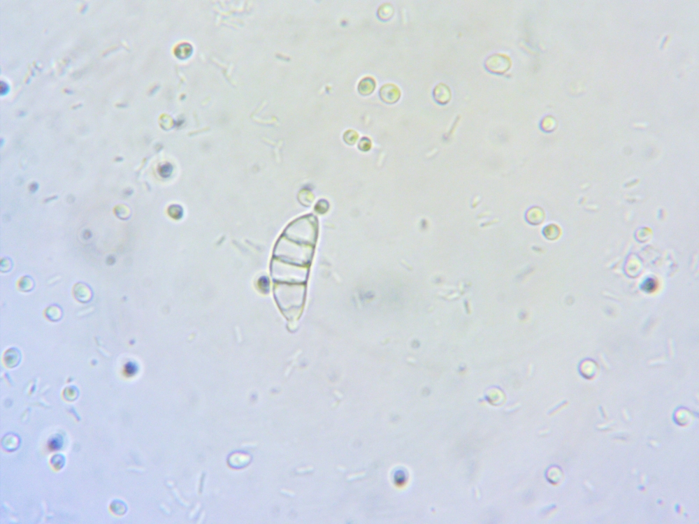Dennoch denke ich, sollte das passen. Die Sporengröße und Konidienform stimmt jedenfalls. Rutstroemia bolaris hat größere Sporen, Rutstroemia sydowiana hat gekrümmte Sporen, Ciboria batschiana hat anders geformte, nicht septierte Sporen ohne Konidienabschnürung.