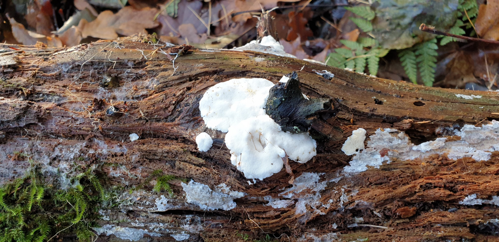 Der weißliche Rindenpilz in der Umgebung wurde nicht untersucht.