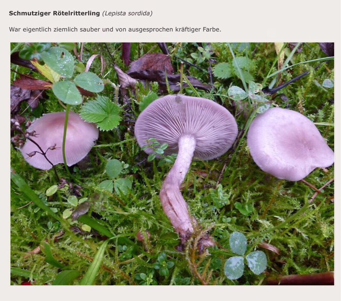 habe eine Frage bezüglich der zwei obengenannten Arten. Was unterscheidet sie makroskopisch? Bin über Umwege im Forum auf einen alten Thread (2014) von Rada gestoßen, wo er Lepista sordida zeigt. (siehe angehängtes Foto 1)