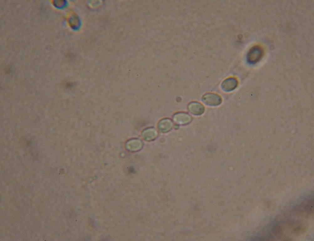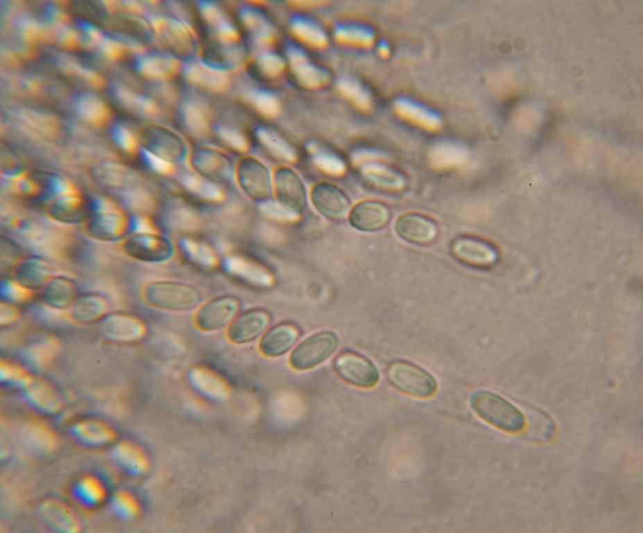 Man sieht, dass einige Sporen schräg im Ascus liegen, typisch für minutissima. Auch das Substrat passt.
