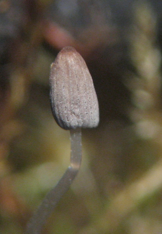 Fruchtkörper bis 10 mm hoch, Stiel leicht beflockt und leicht gerillt.