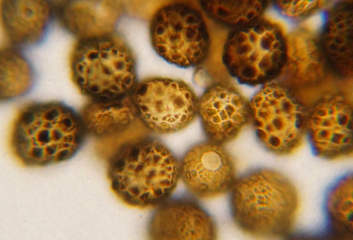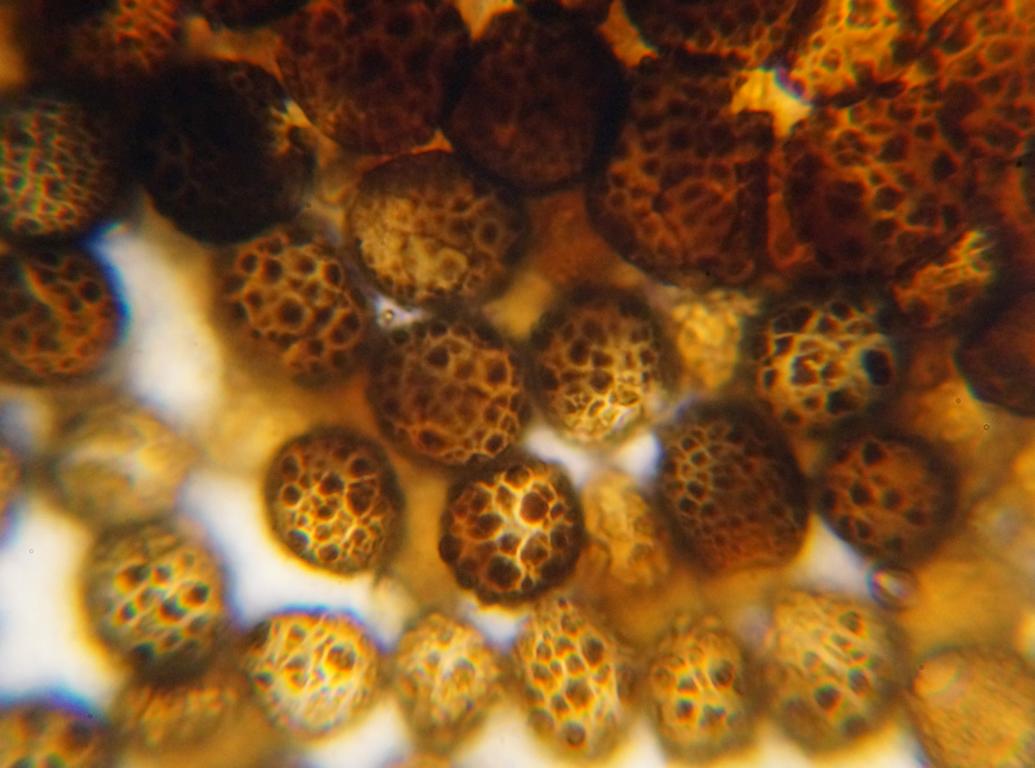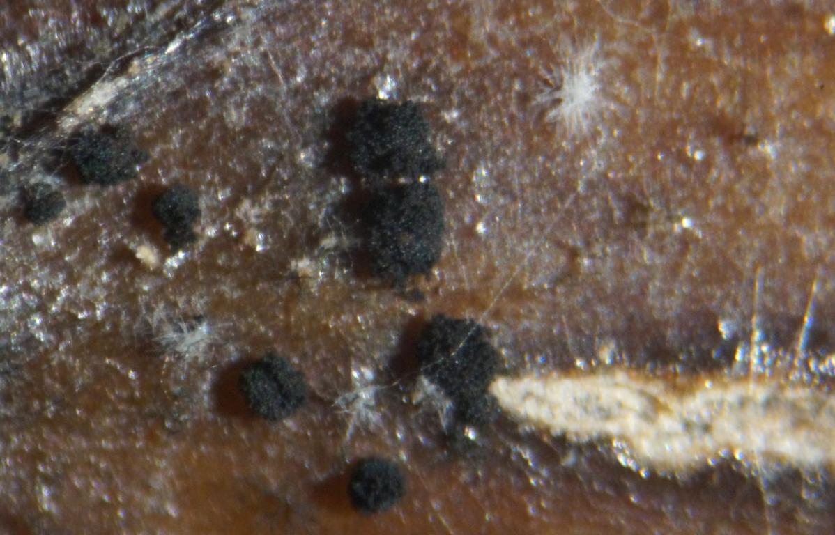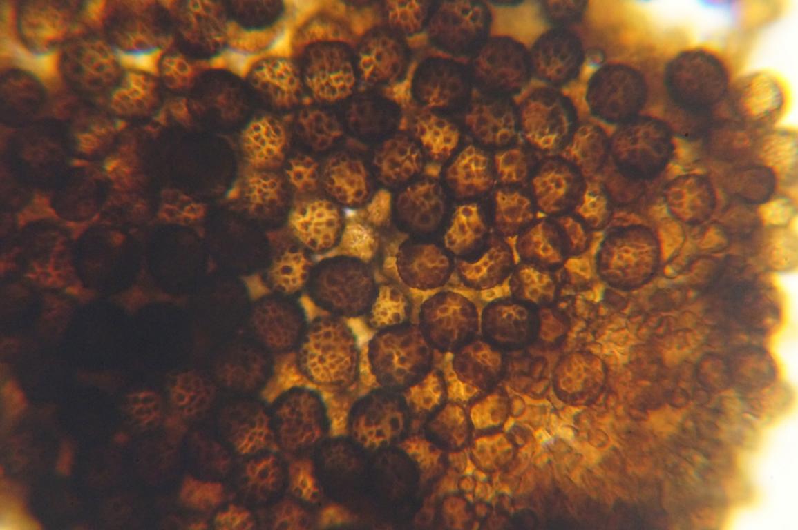 letztes Wochenende war ich mal wieder in meiner Thüringer Heimat zu Besuch. Eigentlich wollte ich etwas Hirschlosung sammeln, aber der viele Schnee machte mir einen Strich duch die Rechnung. Also nahm ich ( angestiftet durch meinen Cousin ) einige abgestorbene Goldregen-Stengel ( Laburnum ) aus Omas Garten mit. Entdeckt habe ich heute darauf einen sehr häufigen, aber unterkartierten Pilz, Epicoccum purpurascens. Ihr könnt ja mal schauen ob es diesen hübschen Pilz auch bei euch gibt. So, nun noch einige Daten. Die Fruchtkörper messen ca. 1 - 2 mm, und die Sporen ca. 20-25x 20 µ.