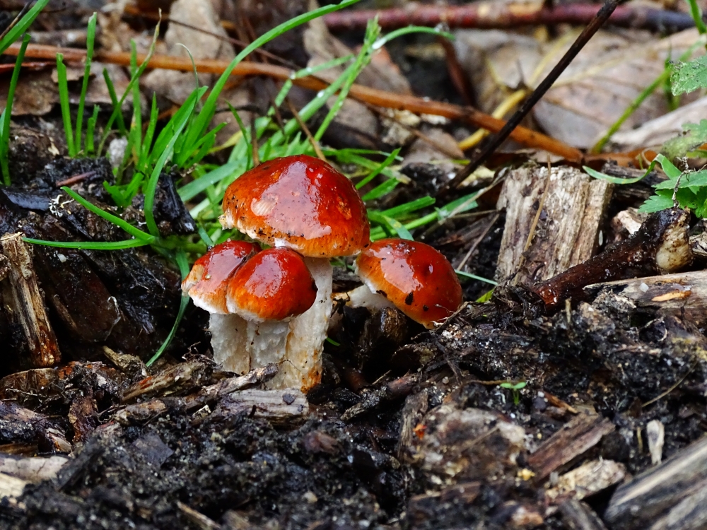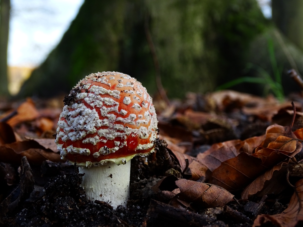 Nur an einer einzigen Stelle hier in meinen Wäldern zeigte sich Amanita muscaria, Fliegenpilz
