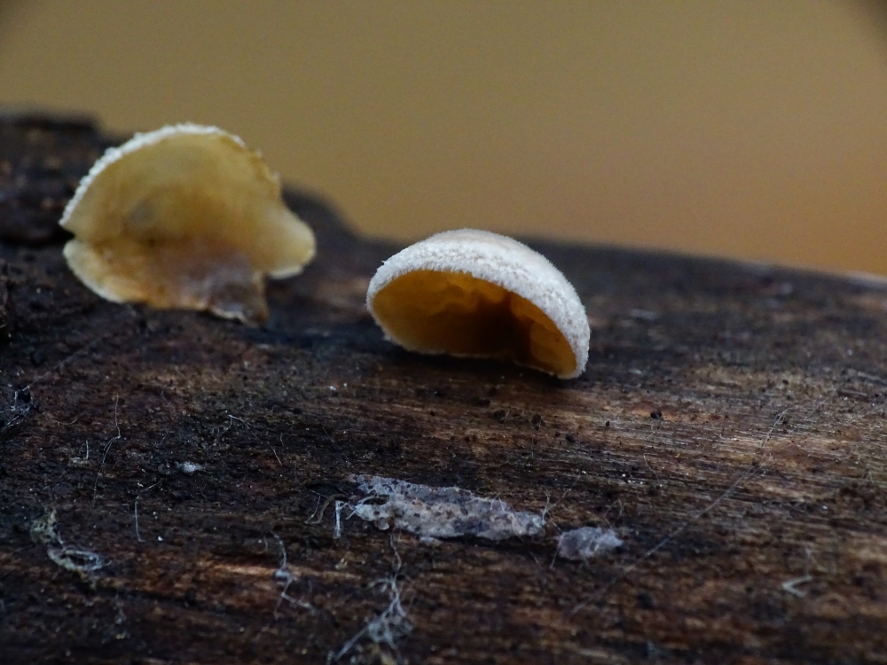 Schizophyllum amplum, Judasöhrchen oder Pappel-Becherrindenschwamm