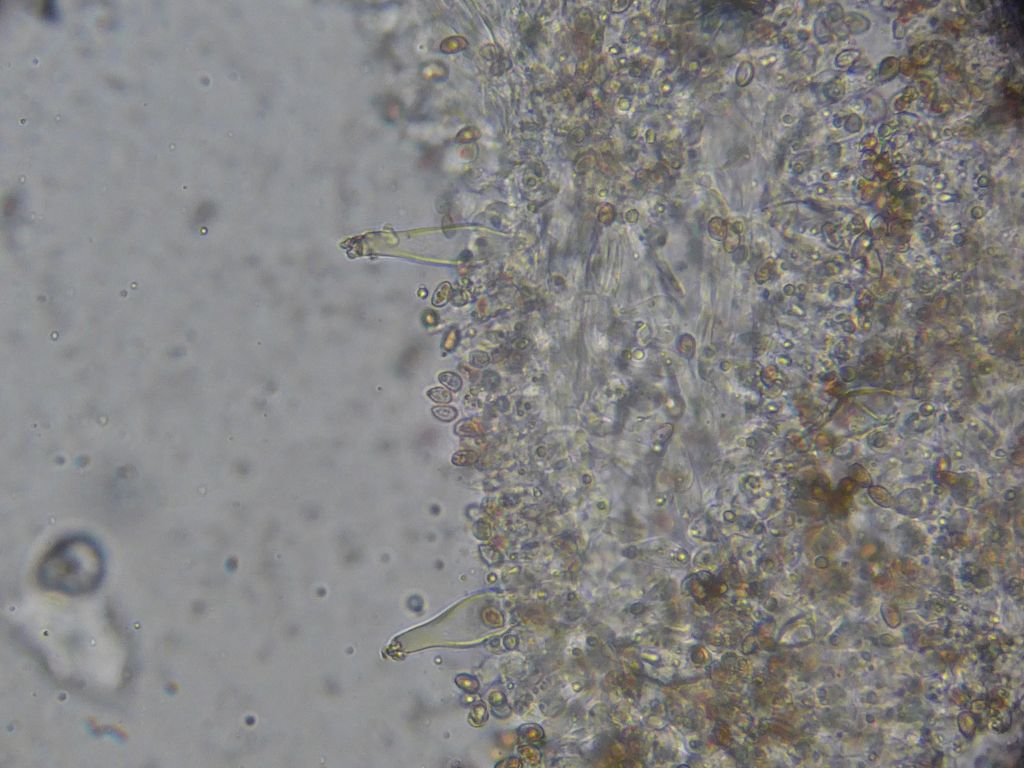 Zystiden: bis 48 x 15 µm; einige wirkten auch "aufgeblasen"; Wanddicke 2-3 µm