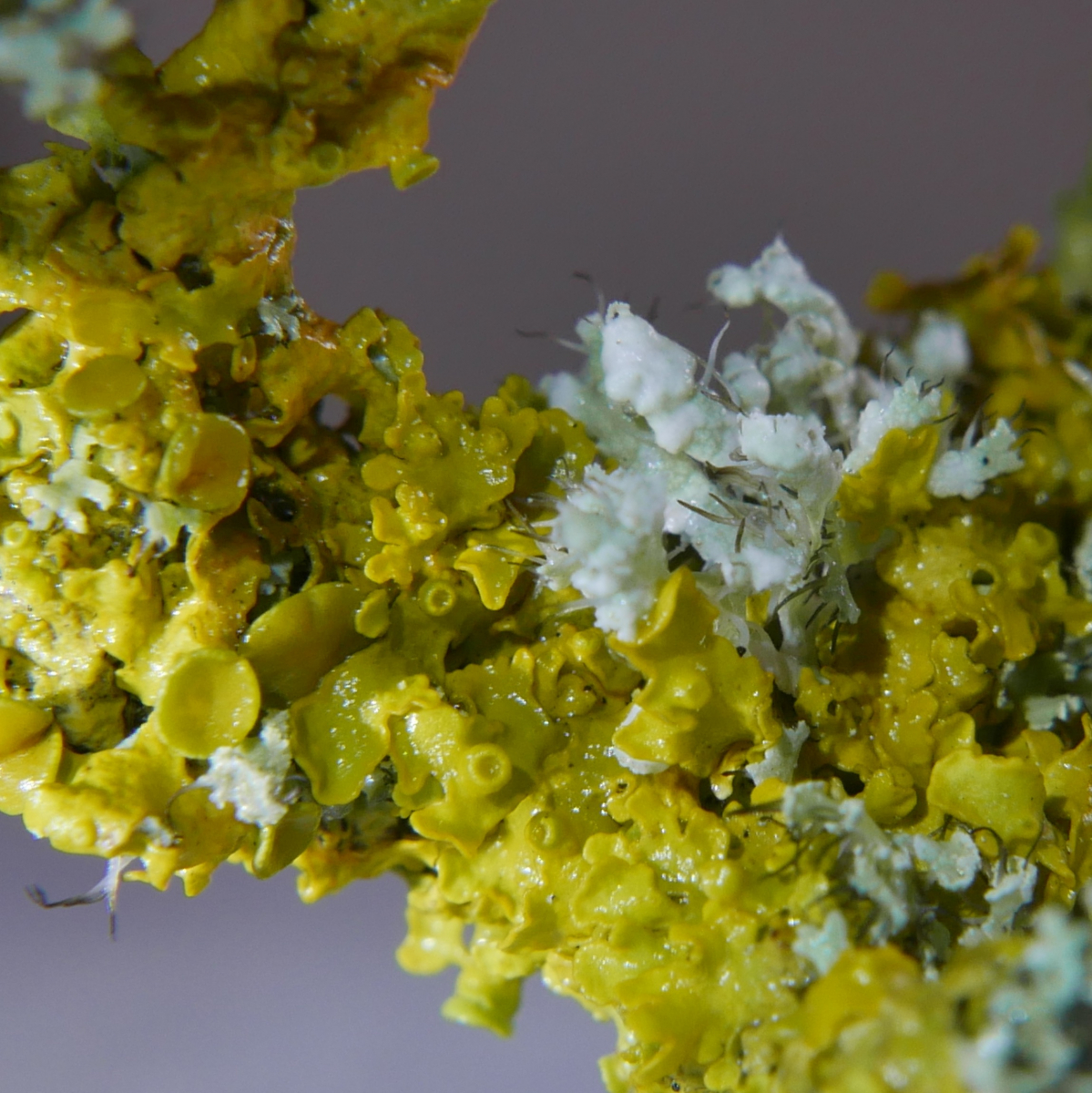 Es sind so wunderschöne kleine Geschöpfe, auch wenn die Gelben Flechten Allerweltsflechten sind, und sie durch erhöhtes Nährstoffangebot vermehrt auftreten, für. ich immer wieder ein Hingucker, dem ich mich nicht entziehen kann.
