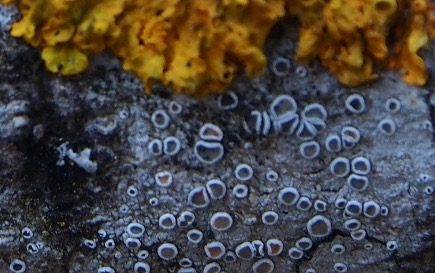 Deine neue Bild zeigt auch Gewöhnliche Gelbflechte - X. parietina (gleiche Flechte wie aus deine erste paar Bilder an Baum ) aber dies mall an Stein . Diese Flechte wachsen an Baum aber auch (nicht so häufig) an Stein . Es gibt ein Doppelgänger welche nur an Stein wachst , ist selten und hat mehr orange Farbe , nicht gelblich wie dein Steinfund .