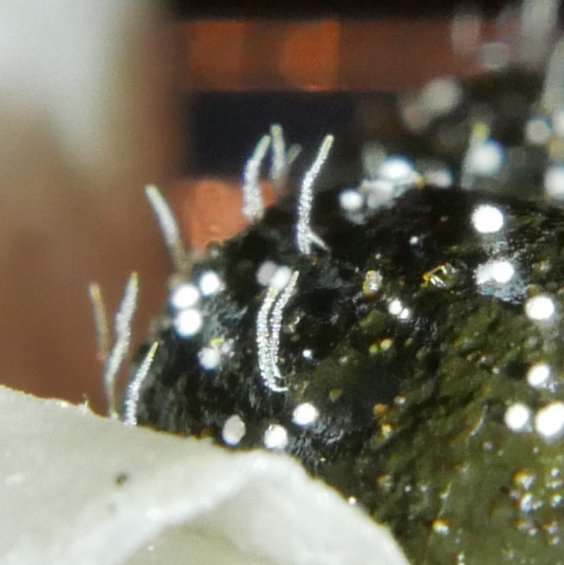 Dann habe ich mich erinnert, dass da was war. Ein paar Fotos gemacht: es waren so kleine Dinger drauf, die mich ein wenig an Eure Pilobolusse erinnern, aber meine Foto-Technik versagt bei dieser Größe. Und, weil eine Erkältung mich flachlegte, wieder vergessen.