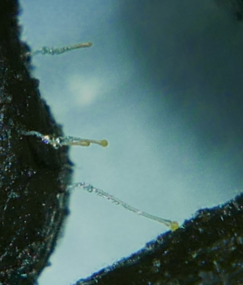 Dann habe ich mich erinnert, dass da was war. Ein paar Fotos gemacht: es waren so kleine Dinger drauf, die mich ein wenig an Eure Pilobolusse erinnern, aber meine Foto-Technik versagt bei dieser Größe. Und, weil eine Erkältung mich flachlegte, wieder vergessen.