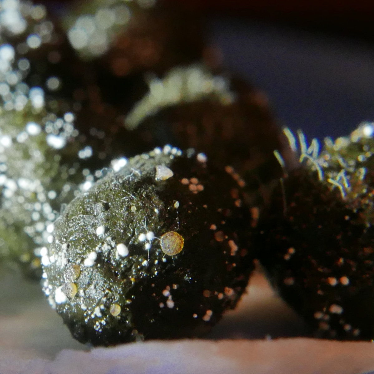 Nun, vor 11 Tagen war ich zum letzten Mal im Wald. Und da lagen sie genau vor mir... Rehköttel (glaube ich zumindest)... ich habe sie eingesammelt, in ein Döschen gepackt und in meinem Pilzkorb vergessen, bis Sonntag.