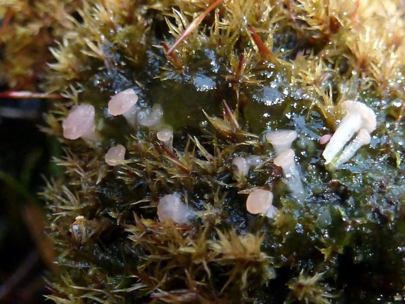 Die für Sclerotinia typischen Myzelballen fanden sich an diversen Polytrichum-Stengeln, Fruchtkörper gabs aber nur diesen einen. Sclerotinia sclerotiorum hat ja bekanntermaßen ein sehr breites Wirtsspektrum, Moose fand ich in bisher in der Literatur nicht als Substrat. Es soll ja noch S. bryophila Kirschstein 1938 geben, der bei Pilze-Deutschland aber nur mit zwei Funden vom Autor aus 1938 verzeichnet ist. Literatur hab ich dazu auch nicht finden können.