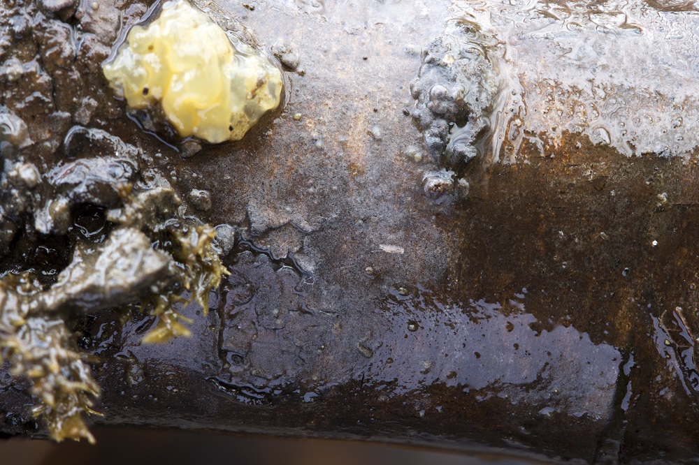 (die "weißen Flecken" sind >Hyphoderma setigerum<)