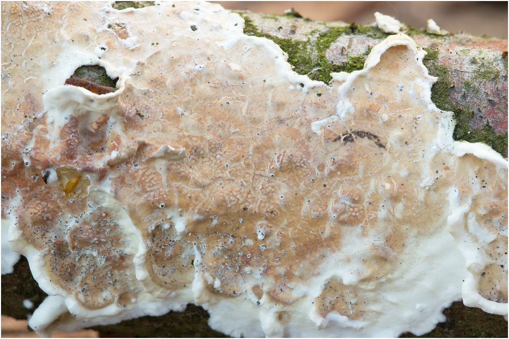 Ach so bei dem Rindenpilz gehe ich jetzt mal stark von Cylindrobasidium laeve aus.