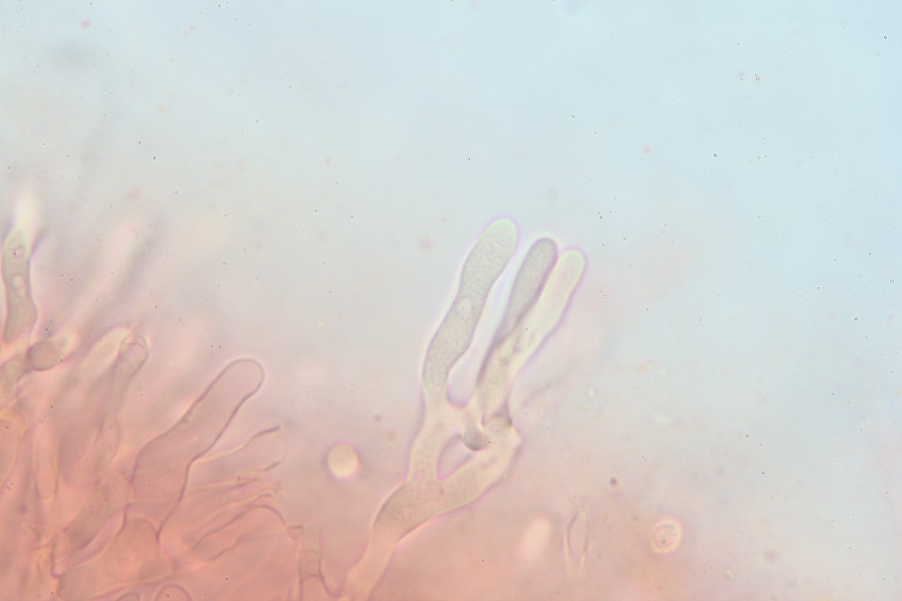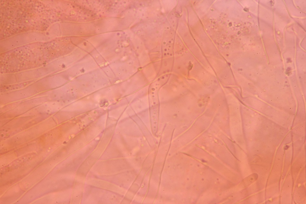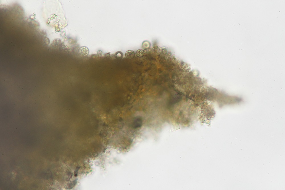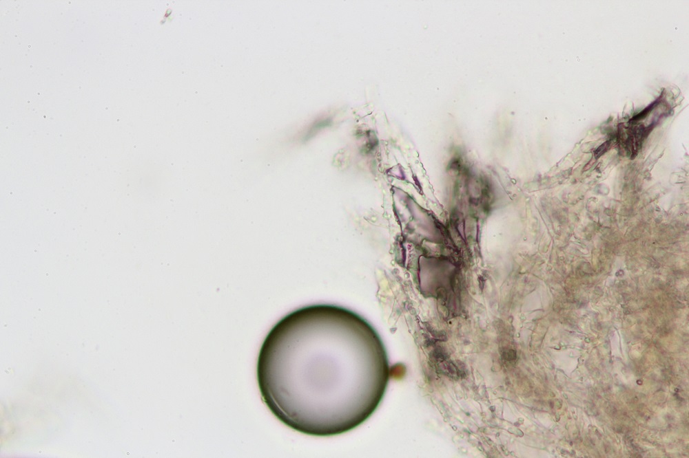 Ich würde bei den unbekannten Gebilden auf Teile von Sporen tippen, sicher bin ich mir da nicht.