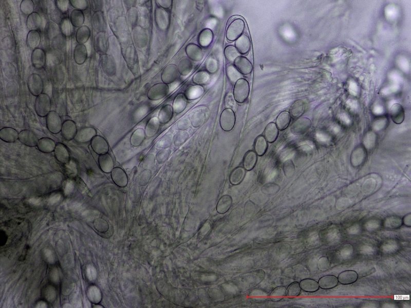 Da ich nur einen einzigen FK genommen habe, würde ich nicht von zwei verschiedenen Arten ausgehen. Einzelne Sporen oder auch Sporengrüppchen verfliegen sich mal von einem Pilz auf einen anderen, aber ganze Asci?