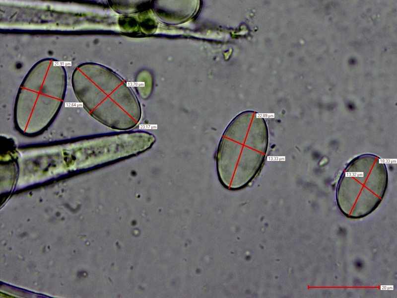 Habe heute nochmal ein neues Präparat mit einem anderen Fructkörper gemacht. Was meine Sporenmaße angeht, gab es eine Überraschung: habe heute 18,3-23 x 12,6-13,8 gemessen.