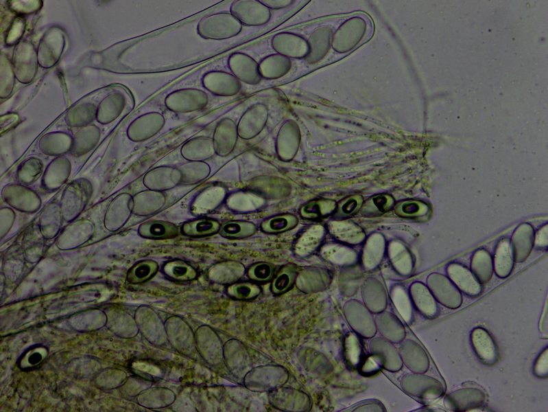 Da ich nur einen einzigen FK genommen habe, würde ich nicht von zwei verschiedenen Arten ausgehen. Einzelne Sporen oder auch Sporengrüppchen verfliegen sich mal von einem Pilz auf einen anderen, aber ganze Asci?