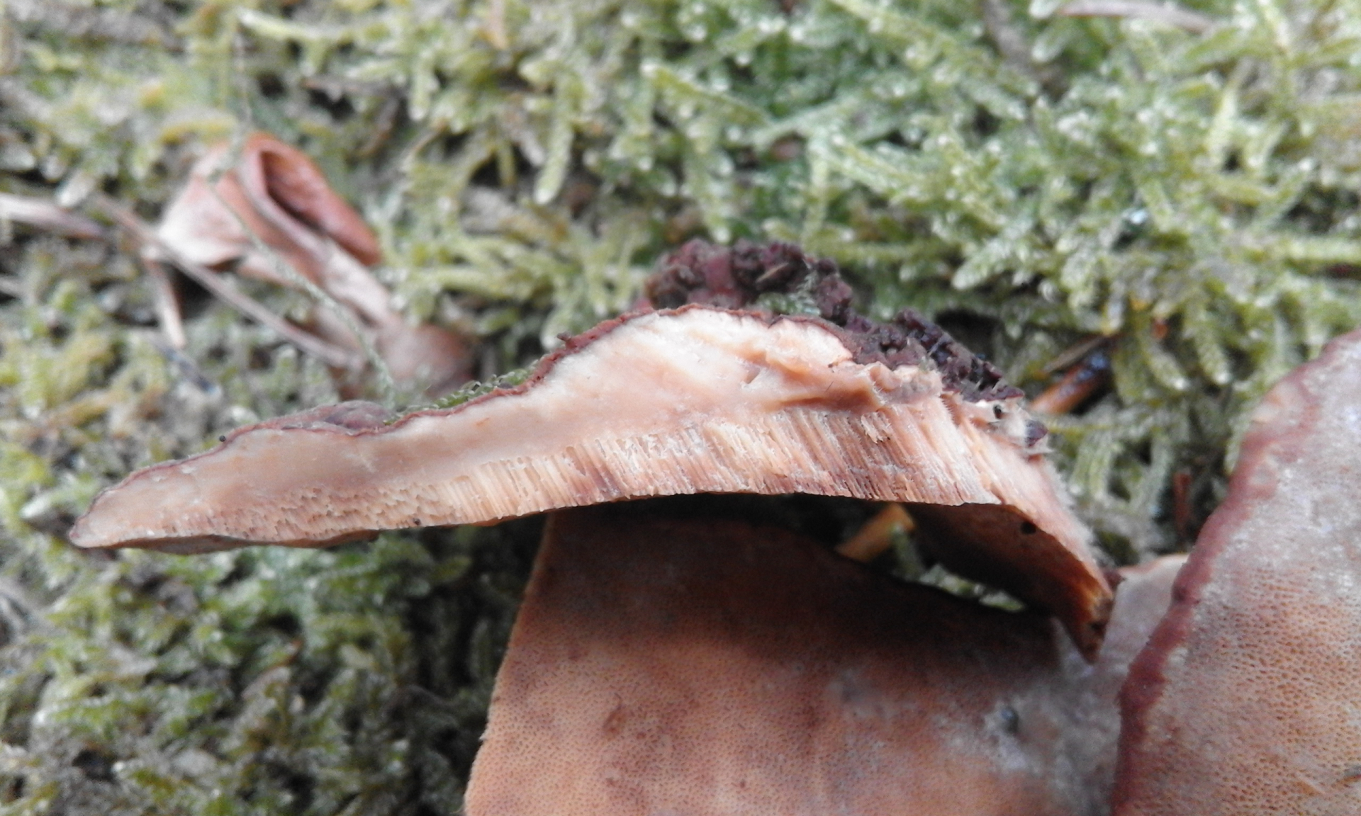 ich nehme an dass es sich um einen der wurzelschwämme rund um HETEROBASIDION ANNOSUM handeln wird? wurde hier ja schon einige male angefragt, ein bisschen stören mich halt die kleinen poren.