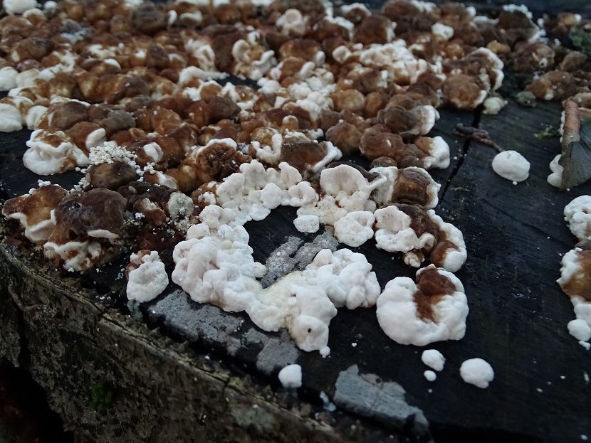 gnubbelige Pilzauflage auf Fagus-Stubben