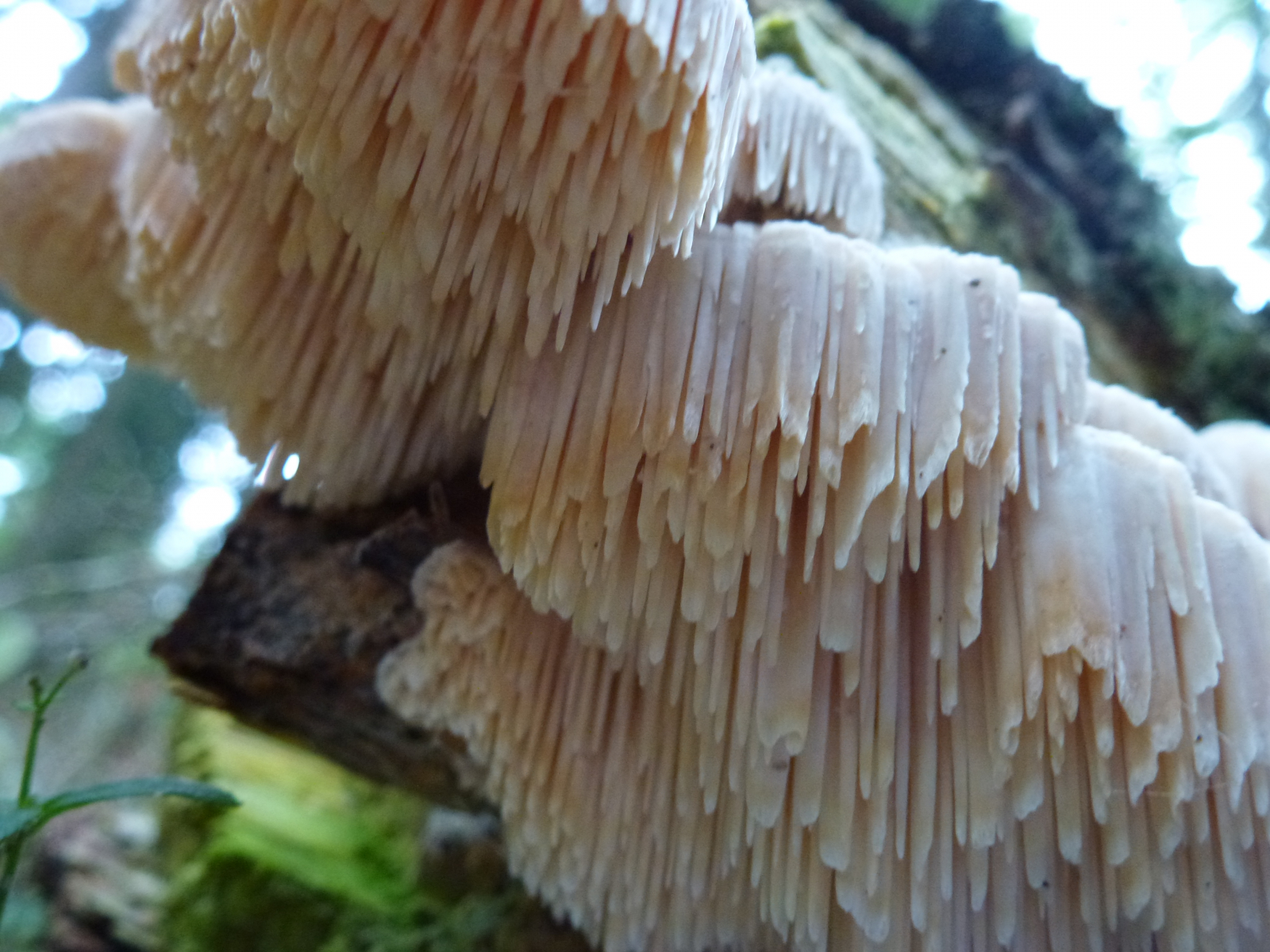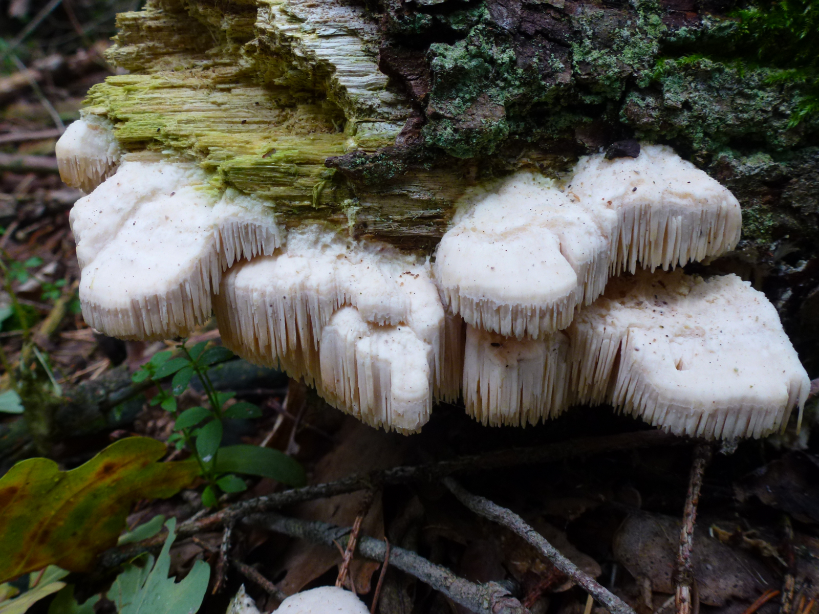 Es fing an mit diesem mehr als beeindruckendem Pilz - Spongipellis pachyodon - Dickzahniger oder Breitstacheliger Schwammporling. Dieser Pilz scheint zumindest in Bayern relativ selten zu sein, eine Kartierung konnte ich nicht feststellen. In Altmühlfranken wächst er aber und heute habe ich gleich ein weiteres Exemplar gefunden.