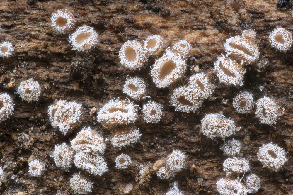 habe heute auf einem Stück Totholz eine Gruppe Becherchen (?) gefunden, die mir recht gut gefiel. Die gesamte Gruppe hat eine Ausdehnung von 70 x 20 mm. Eriopezia caesia scheint mir ganz gut zu passen.