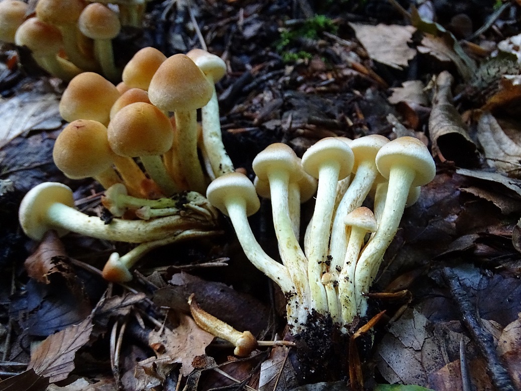 Bild 2 & 3 - anderer Standort, noch ziemlich jung. Hier irritiert mich insbesondere dieser weißlich filzige Belag am Hutrand: