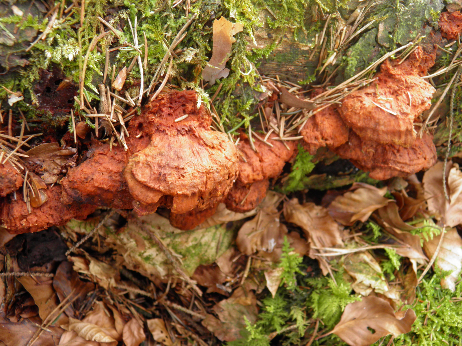an mehreren liegenden morschen fichten hat ´s mich teilweise flächig orange angelacht, entweder seitlich oder an der unterseite liegender stämme