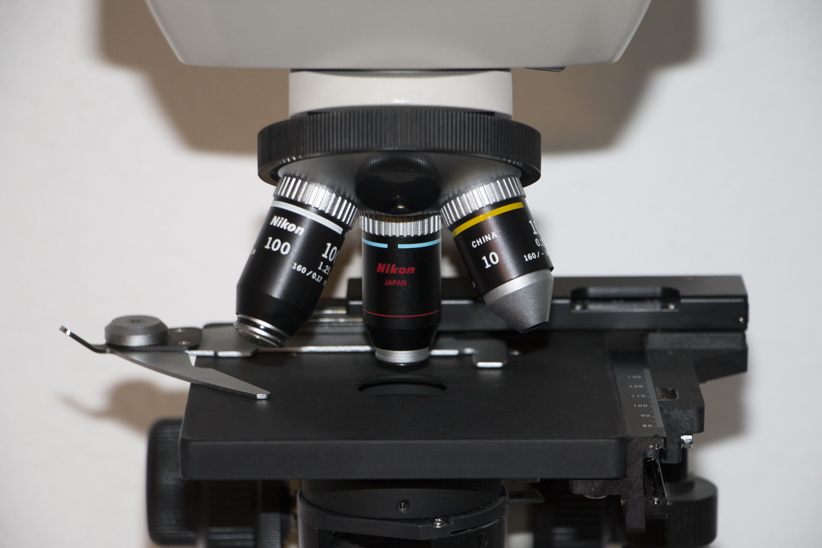 montiert sind drei: 10x, 40x und 100x Öl