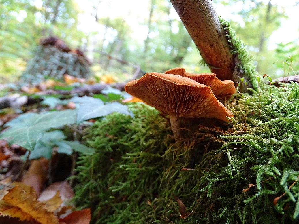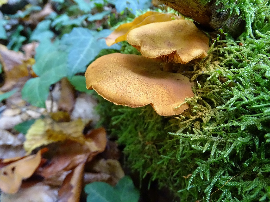 auch den von Ende Oktober vom Otterbach / Südpfalz. Auf ziemlich morschem Holz, könnte alles mögliche sein. Das ist ein schöner bachbegleitender naturnaher Mischwald, buchendomiert, aber auch mit wohl eingebrachtem Nadelholz und auch immer wieder mit Tanne, vor allem Jungwuchs.