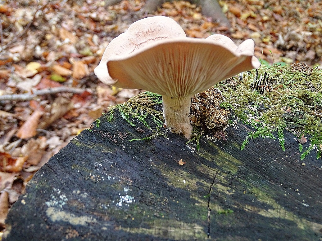 und immer noch vom Okt. 2015 vom Otterbach. Da hatte ich eine ganze Reihe Milchlinge, die als Baumpilze direkt auf Fagus-Stubben wuchsen. Leider habe ich nur 2 Fotos. Am ähnlichsten sehen sie den Artne aus der Gruppe um den Hainbuchen-Milchling - Lactarius pyrogalus, aber dann doch nicht wirklich. Und dann eben der Wuchsort direkt AUF den Stubben - sehr eigen. Auch eigenartig, dass ich nur diese beiden Fotos gemacht hatte, das war keine Ausnahme, insgesamt bestimmt mehr als ein Dutzend, die ich so gefunden hatte. Vielleicht hat ja jemand eine zündende Idee: