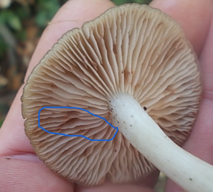 Es ist schwer zu erklären, wie das funktioniert. Stefan (Climbingfreak) kennt viellelicht den Witz vom "typischen Entoloma - Habitus". Den es natürlich nicht gibt, in kaum einer anderen gattung nehmen die Fruchtkörper der einzelnen Arten so total unterschiedliche Formen an. Dennoch setzt sich so ein Gesamtbild (für bestimmte Artengruppen) zusammen, wenn man die ein paar mal in der Hand hat und eingehend untersucht hat. Das war hier noch stärker ausschlag gebend als nur die Lamellenfarbe.