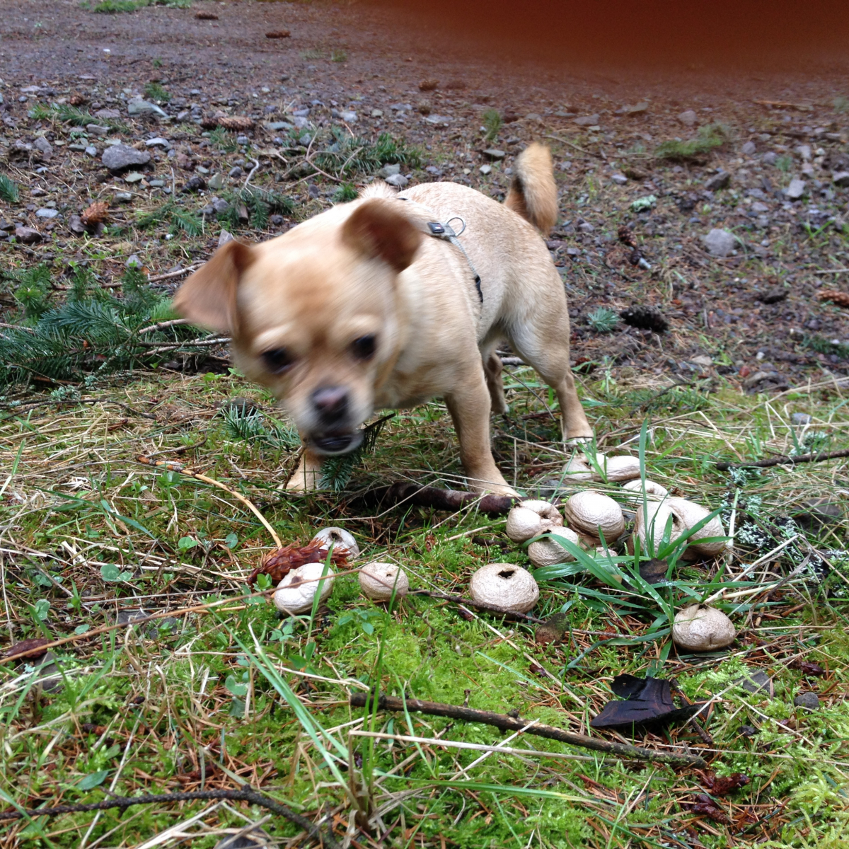 Das Foto vom Gremlinmit den Bovisten und hab ich dann auch noch vergeigt.