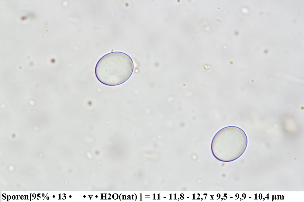 Die Sporen sind deutlich breitelliptisch bis subglobos. Das L/B Verhältnis sollte um 1,2 (auch größer) sein.