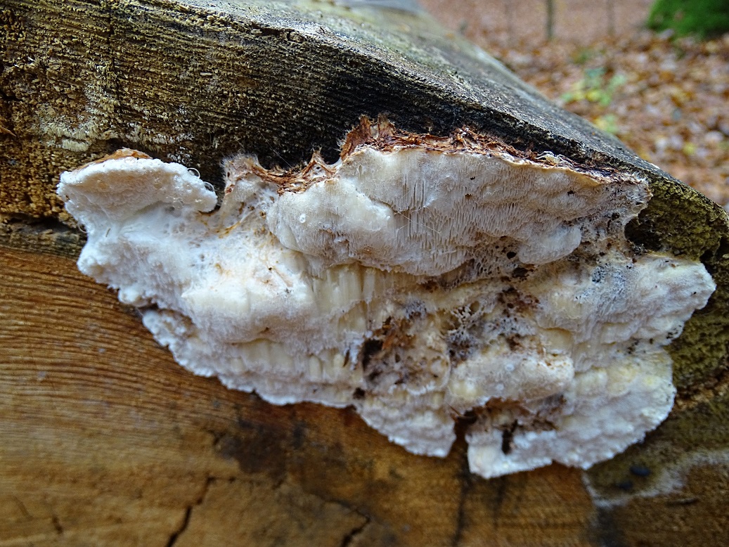 ich sichte gerade weiter die unbestimmten Bildordner von 2015 und bin auf einen fast völlig resupinat wachsenden Pilz an Pinus gestoßen, den ich nach einigem Suchen als Antrodia serialis ansprechen möchte. Gefunden - wo auch sonst - am Otterbach / Südpfalz, Nov. 2015. Sieht ja doch etwas untypisch aus so fast ohne die reihigen Hüte, aber z.B. bei Aphyllopower finden sich recht ähnliche Bilder. Liege ich hier richtig?