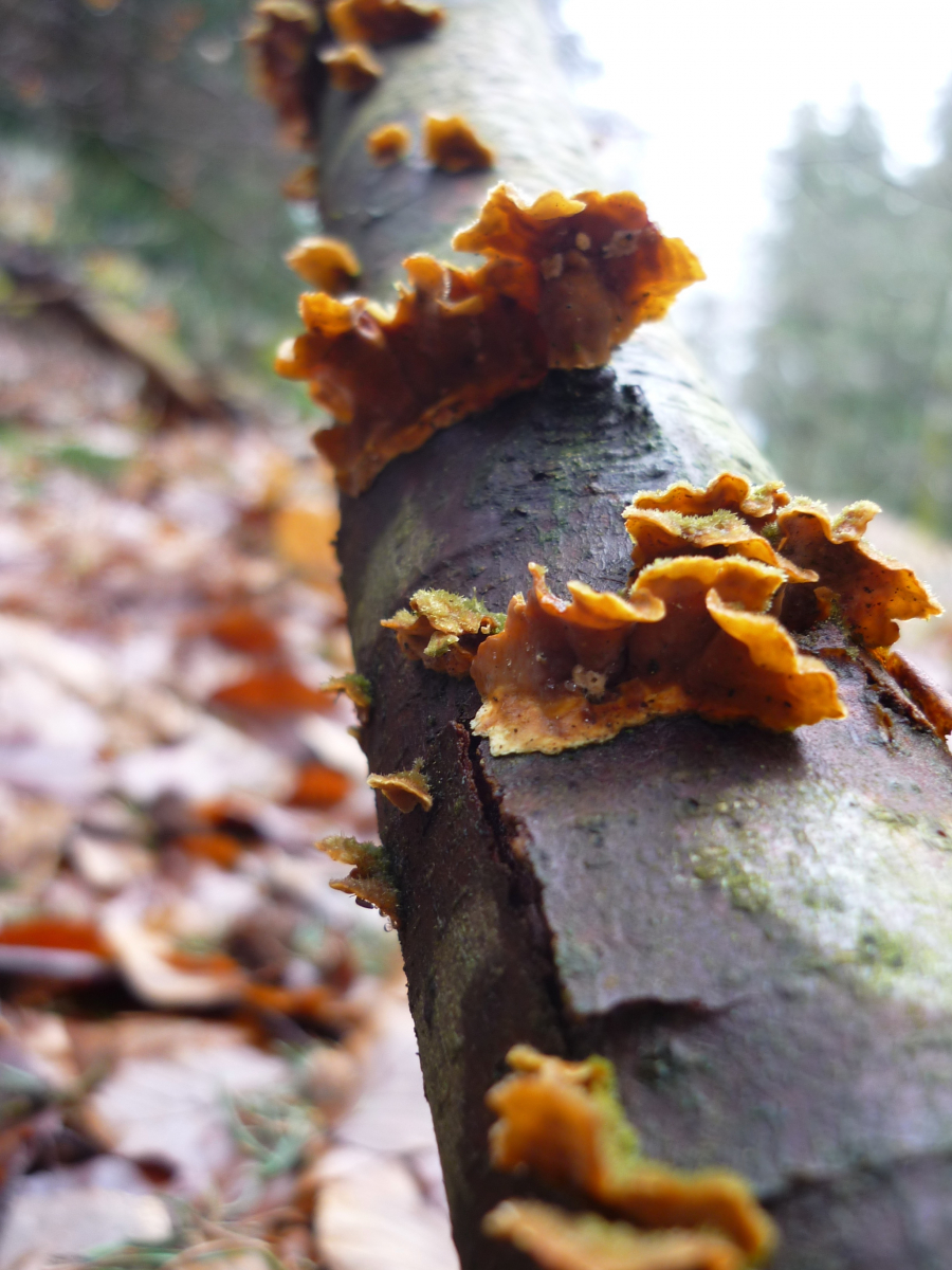 das Teil auf dem Buchenblatt ist nur Baumrinde. Die Pilze auf diesem Foto waren nicht vollflächig angewachsen. Bei dem kleinen Zweiglein auf dem Bild oben müsste ich noch einmal nachsehen. Aber sie schienen sehr fest aufzusitzen