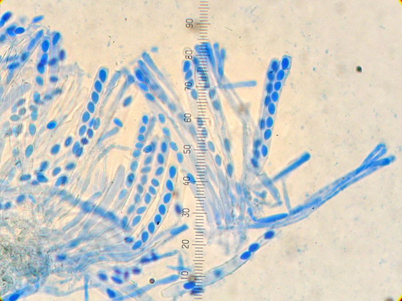 Hier auch mal ein Foto aus 2015 vom gleichen Fundort. Diese Probe wurde mikroskopiert. Sporen 14,2-16,3 x 6,5-7,0 µm.