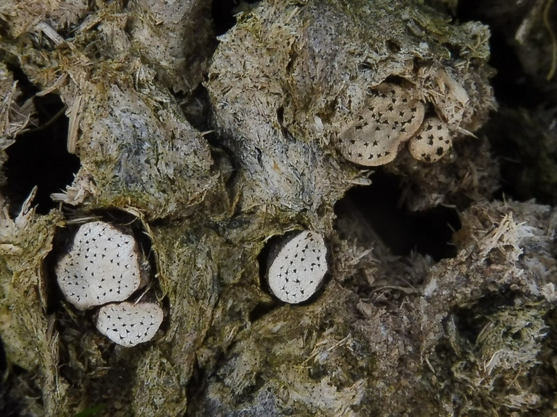 Rudi entdeckte schließlich beim Ästchendrehen einen resupinaten Pilz, den ich so flächendeckend und in dieser Farbe noch nicht gesehen hatte.
