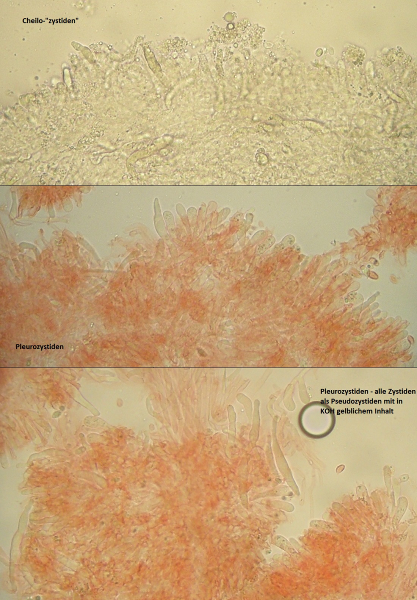 Tja, und die mit ornamentierten Sporen, wie tylicolor, anthracohila und co kann man ausschließen, deren Sporen sehen ganz anders aus. Und die anderen Arten der Gattung haben keine Zystiden.