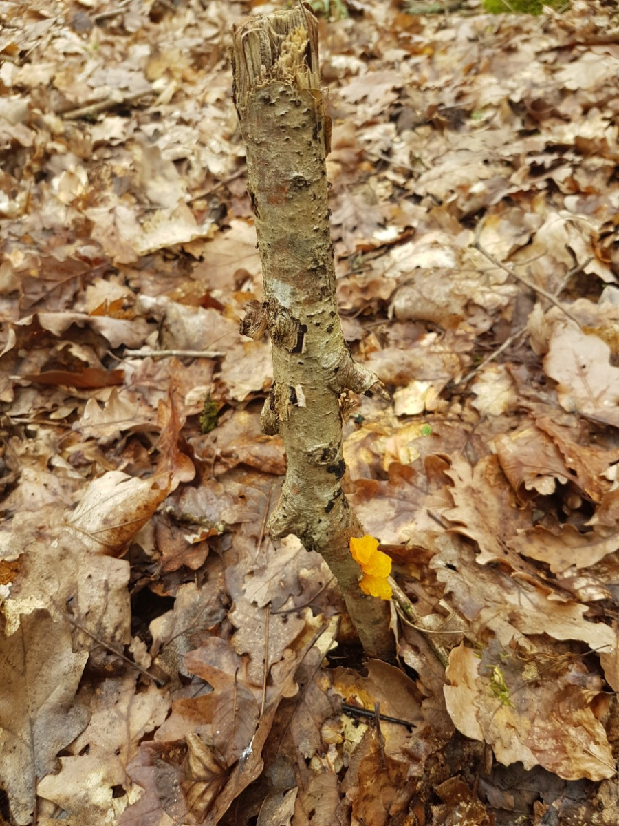 Das Highlight der Tour: Etwas gelbes, glibberiges auf Laubholz-Ast. Ich tippe auf TREMELLA MESENTERICA (Goldgelber Zitterling)