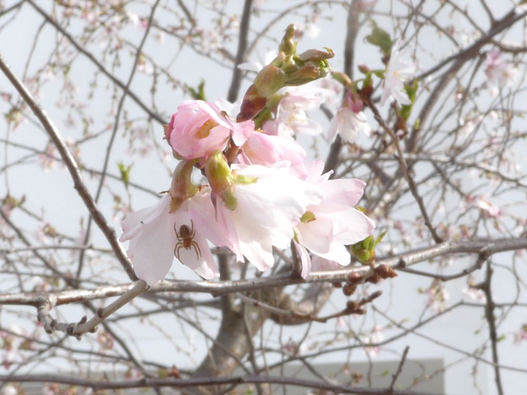 die ersten Kirschblüten trauten sich auch schon zaghaft raus; man beachte die von mir fein säuberlich platzierte Deko-Spinne. :giggle: