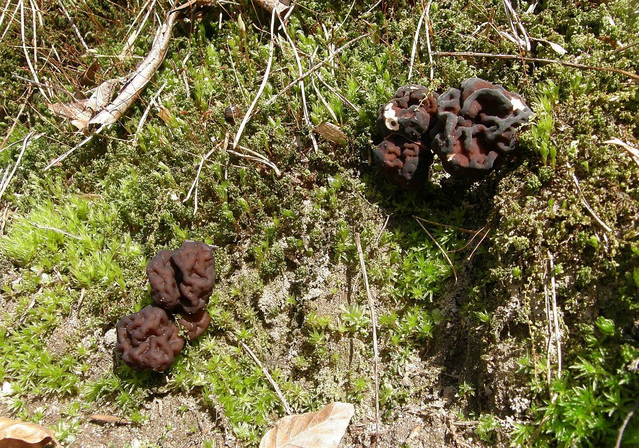 Wie so oft war ich wieder mit Pilzfreund Rainer unterwegs, der über ausgezeichnete Ortskenntnis in der Eifel verfügt. Zu Beginn suchten wir einen bekannten Standort der Böhmischen Verpel auf, obwohl die Art gewöhnlich erst 14 Tage später erscheint und wurden reich belohnt. So viele Exemplare gab es noch nie. Mal 5 oder im besten Jahr auch ca. 20 Exemplare kannten wir ja aus den Vorjahren, aber mehr als 50 brachten uns zum Staunen.