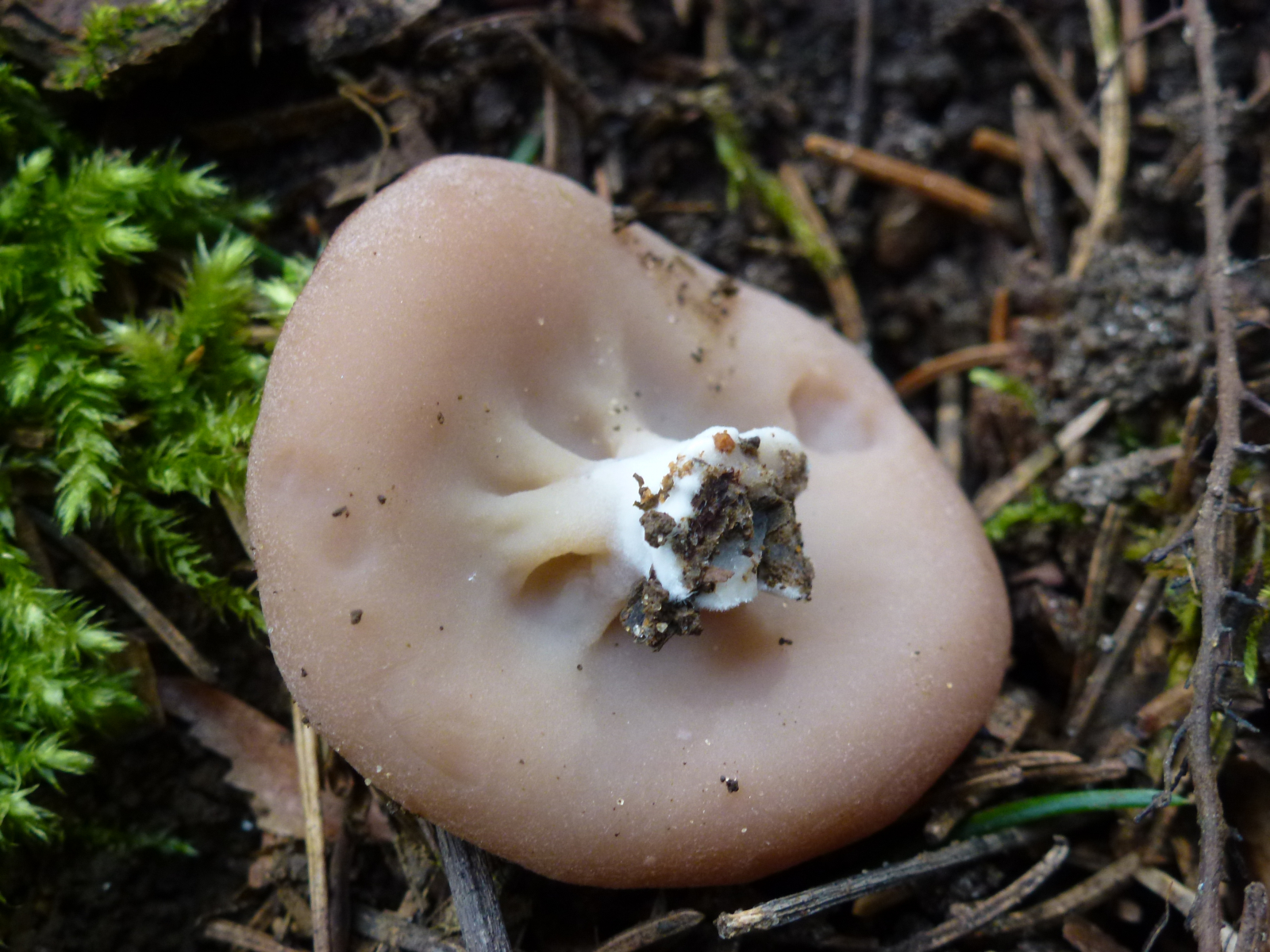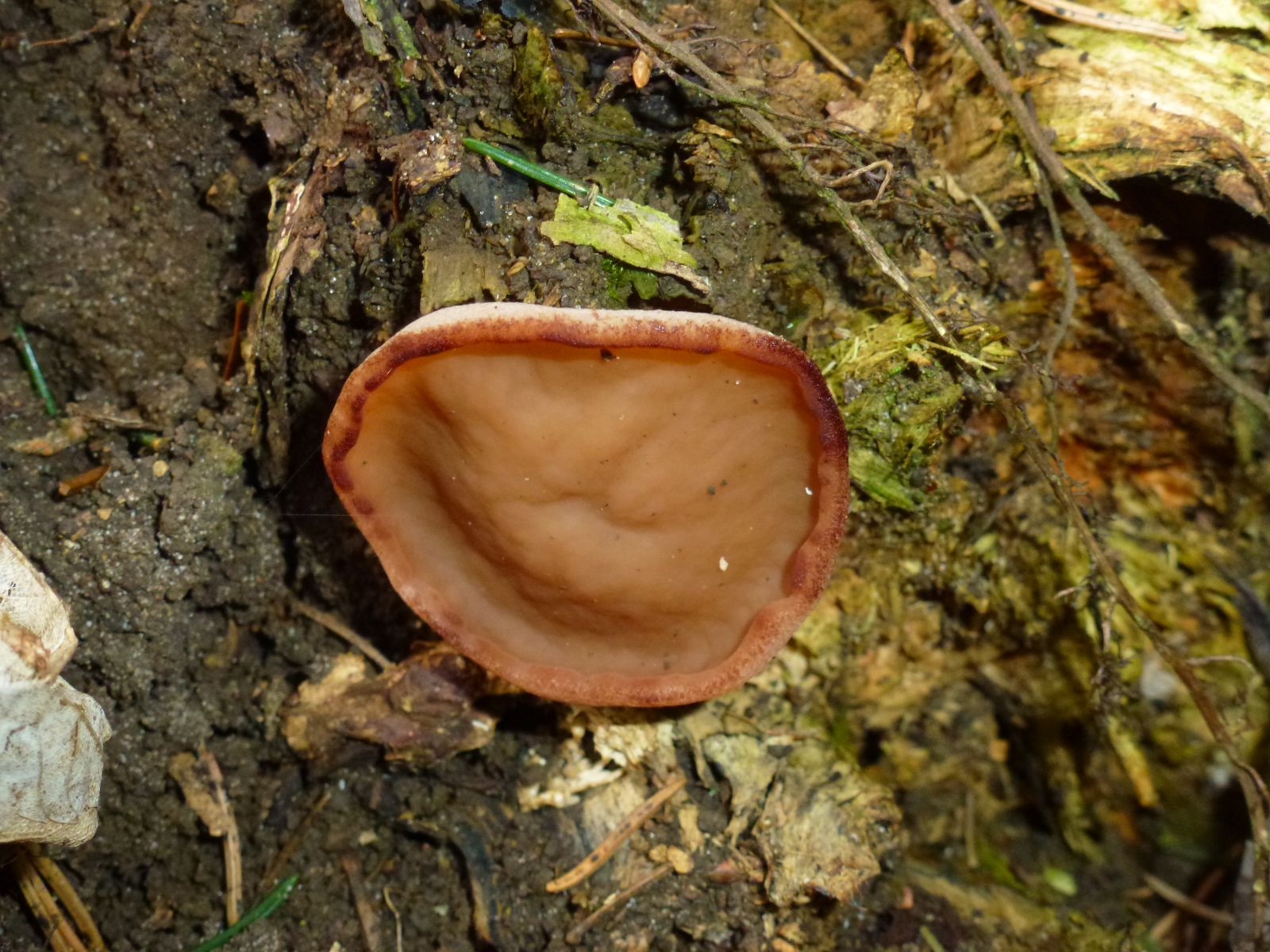 eigentlich ist diese Bitte um Bestimmung fast ein wenig peinlich denn in letzter Zeit wurden diese (oder ähnliche) Pilze immer wieder einmal angefragt :shy: Aber zu meiner Entschuldigung kann ich immerhin sagen, dass zumindest bei mir die Suchfunktion gerade nicht funktioniert. Im Wald selbst dachte ich zunächst, dass es ein Becherling sein könnte, nach Suche im WWW tendiere ich nun eher zu einer Scheibenlorchel.