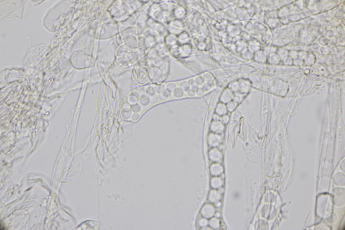 7. Fichtenzapfenrübling, wenn ich mich richtig orientiert habe, die Trama unter der Huthaut. 100x Vollbild