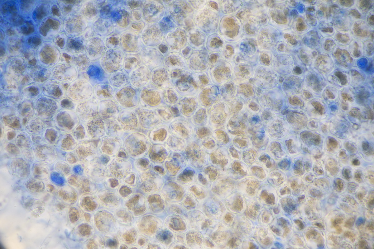 1. Zerfließende Gallertträne, 100x, Vollbild
