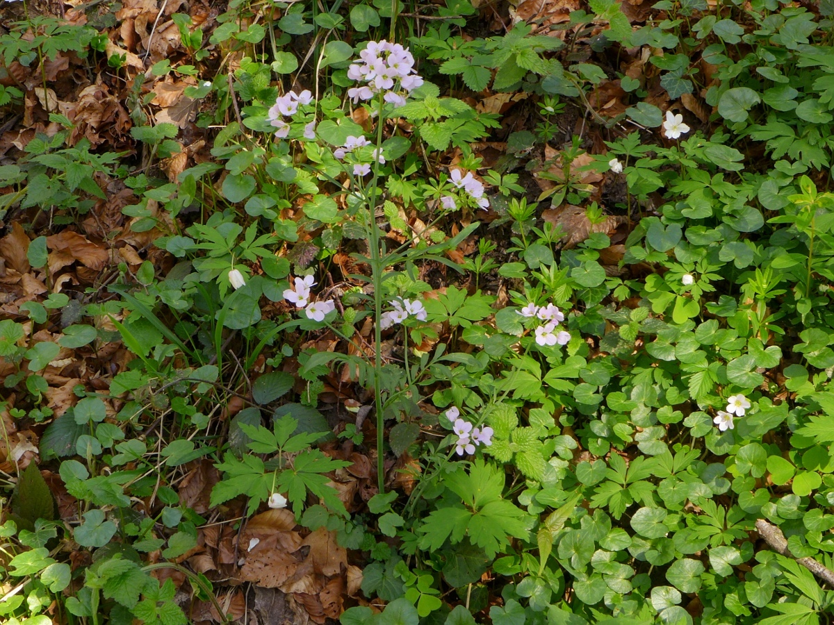 (Alles waren noch zarte Blätter, Cardamine flexuosa noch ohne Blüten, C. pratensis in Knospe)