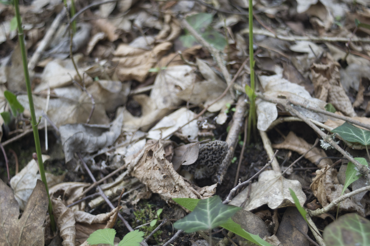 Und dann lugte tatsächlich die erste Morchel am Wegrand hervor: