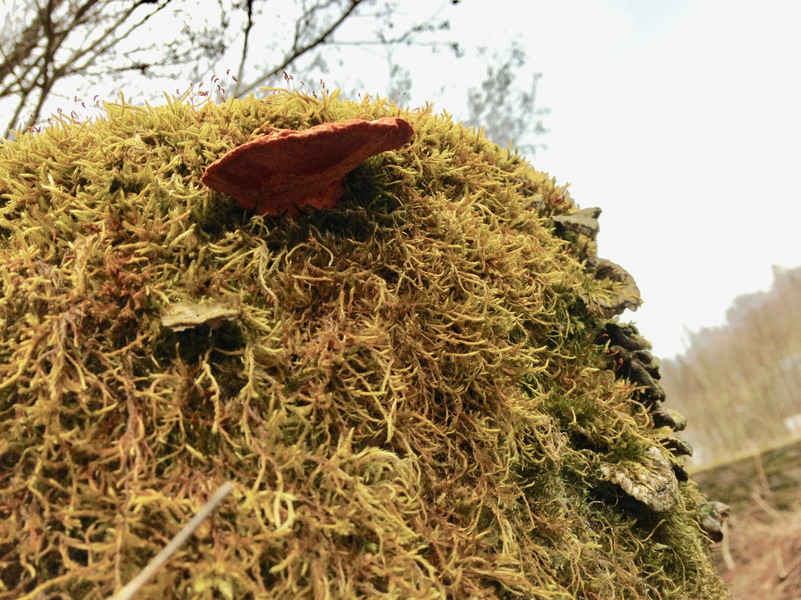Schmetterlingstrameten und Birkenblättlinge sind klar, ich denke auch, daß Beli bei dem anderen Porling eine sehr gute Idee hatte: Wenn der so orange ist, wie es auf den Bildern aussieht, dann kann das gut ein Zinnoberschwamm (Pycnoporus cinnabarinus) sein. Näher ran, oder auch den Fruchtkörper abnehmen zur genauen Untersuchung, das erleichtert natürlich die Bestimmung.